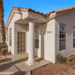 Welcome to 701 Aztec Circle, a charming 2-bedroom, 2-bath townhome with a detached garage, ideally located on a corner lot at the southeast corner of Aztec Circle and Mesquite Boulevard in the desirable Mesa Townhome community of Mesquite, NV. This light-filled home offers an open, inviting floor plan with a spacious living area that flows seamlessly into the dining space and kitchen – perfect for everyday living or entertaining. The kitchen features modern appliances, ample cabinetry, and a convenient breakfast bar.The primary bedroom includes an ensuite bathroom, while the second bedroom is ideal for guests, a home office, or hobby space. Step outside to enjoy the covered patio, where you can relax and take in peaceful desert surroundings and mountain views. A detached single-car garage provides parking and extra storage.Conveniently located close to golf courses, shopping, dining, medical facilities, and outdoor recreation, this townhome is perfect as a primary residence, vacation getaway, or investment property. Enjoy low-maintenance living in the heart of Mesquite with comfort, convenience, and views.