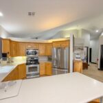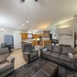 This is the perfect home for when you want to be in one of the nicest, best located, most established neighborhoods in Mesquite, but you don’t want or need a huge house. The house is also low maintenance despite some of the lushest, prettiest, greenest, mature landscaping in Mesquite. This home is 2 bedrooms, 2 baths, and approximately 1636 sf. Just remodeled with new paint and new luxury vinyl plank flooring, beautiful stainless steel appliances and lots of light from big beautiful windows with high ceilings and lots of angles… the lighted pot shelves and under and over cabinet lights just give such a welcoming ambiance. The two car garage is actually big enough for two cars along with your shelves and storage for all your garage stuff. The quiet, sheltered, inviting back yard with full length covered patio is just perfect for great barbecuing and enjoying a great evening with a couple of close friends and your furry four legged kids. Or just enjoy the fresh air and a quiet place to sit and enjoy a great book. Just a short stroll to the Mesquite Vistas rec center with pool, spa, fitness center, party room, locker rooms, tennis, pickleball, volleyball, basketball, & MORE!
