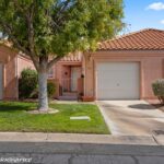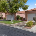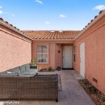 ATTRACTIVE COURTYARD ENTRY ….. PROVIDES SPACIOUS OUTDOOR ENTERTAINING !!! Beautifully refurbished kitchen cabinets bring a lighter feeling to this kitchen. New luxury vinyl plank in entry, kitchen and living room. Reconfigured kitchen countertops have been lowered from the traditional breakfast bar height to a much more appealing 36″ height counter tops. Smart change in kitchen counter top height and width make these new counter tops serve as a “buffet line” when entertaining family and friends. Dining area has windows that look out into the courtyard. Living room has contemporary look with a new electric fireplace , vaulted ceilings and ample room for two conversation areas within this living room. Main bedroom easily accommodate a king size bed. Main Bathroom has walk-in shower. Guest Bedroom, guest bathroom and laundry room are on the front side of this townhome creating privacy and comfortable living for your guests. Mountain views from your back patio are perfect for early morning sunrises. “Furniture available to purchase on a separate bill of sale”. 1 car garage. Homeownership in the Crossings offers a community clubhouse, pool, hot tub.