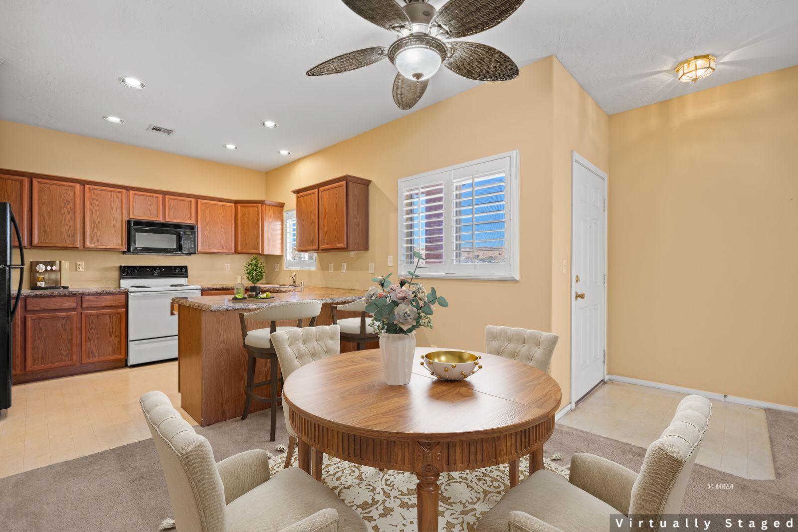 NOW $22,000 UNDER ORIGINAL ASKING PRICE!!! Let’s make a deal on this charming Two-Bed Condo in the Desirable Enchantment Community. This condo offers the perfect blend of comfort & style, featuring 2 spacious bedrooms & 2 bathrooms. Enjoy the benefit of dual balconies-one in the front & one in the back-perfect for morning & evening relaxation. Step inside to discover a bright and inviting living space, complete with sleek granite countertops in the kitchen, ideal for cooking and entertaining. Ceiling fans throughout ensure a cool and comfortable atmosphere year-round. Convenience is key, as this unit is just steps away from ample parking and the community’s fantastic pool and hot tub area, providing a refreshing escape just outside your door. For you convenience, all appliances are included, even the washer and dryer! As part of the Mesquite Vistas Homeowners Community, you’ll enjoy access to a wealth of amenities, including a clubhouse with a fitness center, sports court, and an inviting outdoor pool area. Surround yourself with lush grass parks and tranquil water features, creating a serene environment for relaxation and recreation.