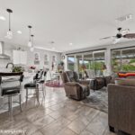 This stunning single-family residence offers 2 bedrooms, 2 bathrooms, and a versatile flex room, all designed for comfort and style. A paver driveway leads you to the fully fenced property, with synthetic grass in both the front and backyard for easy maintenance. The backyard is perfect for entertaining, featuring a paver patio with an extended pergola covering. Inside, tile floors flow throughout the main living areas, with soft carpet in the bedrooms. The living room’s entertainment wall is a showpiece, adorned with a stone face and elegant glass shelving. The kitchen is a chef’s dream, showcasing bright white cabinetry with stainless hardware, granite countertops , stainless steel appliances-including a cooktop with a sleek vent hood-and a gorgeous island with pendant lighting.This home blends low-maintenance living with high-end finishes, all within a vibrant 55+ community. Sun City Amenities include access to the Pioneer Center, complete with 18 hole putting course, sports courts, fitness center with walking track and indoor and outdoor pools and hot tubs. Golf course privileges are also included for Sun City residents. Don’t miss out on this beauty!