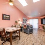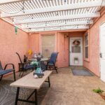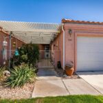 This remarkable single story is located in the Crossings townhomes community with multiple amenities included. Inside the inviting clubhouse offers a exercise and pool table area with a partial kitchen designed for holding events. Soak up the sun next to the outdoor pool & spa and enjoy the sunny days & crisp blue pool. This middle unit provides a 1 car garage with driveway parking space & welcoming front courtyard that is covered with shade for extra outdoor space to enjoy your mornings or evenings. This home has great natural lighting throughout provided by the vaulted ceilings and skylights. The open layout offers a generous size front living room that rest adjacent to the kitchen that provides a pull up breakfast bar and stainless steel appliances. The primary bedroom is separate from the guest bedroom providing space and privacy. Enjoy the views from underneath the covered patio in the backyard!