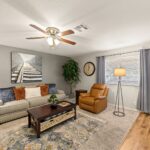 - Interior Features: Ceiling Fans, Flooring- Carpet, Flooring- Laminate, Flooring- Tile, Window Coverings