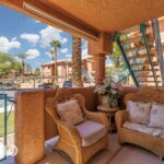 Don’t miss your chance to call this beautifully furnished 2 bedroom, 2 bath ground floor condo your home! Nestled in the desirable Rock Springs 2 subdivision of Mesquite, NV Spanning an impressive 996 sq. ft., this gem boasts a bright open floor plan designed to enhance both space and functionality. Step inside to discover two bedrooms, each featuring exceptionally LARGE closets to accommodate your storage needs. The exquisite tile flooring flows seamlessly throughout the living areas, while the bedrooms are adorned with plush carpeting for a touch of comfort. Imagine relaxing on your patio for morning coffee or evening sunsets. The condo also comes with a handy storage unit and a covered carport, ensuring you’ll have all the space you need. When it comes to relaxation, this community shines with two sparkling swimming pools and hot tubs, perfect for unwinding on those warm Nevada days.