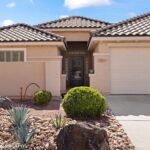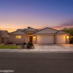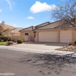 POOL…3 Car Garage…3 Bedrooms….3 Bathrooms + Den. Get set for summer and relaxing by the pool. YOUR POOL. Beautiful desert living at its best in Mesquite, Nevada. Pool offers spacious emtertaning area on the north side of the pool. Large covered awning provides the ultimate in comfort while enjoying the bright summer days yet covered under the awning. Outdoor landscaping in the backyard offers beautiful mature palm trees. Vaulted ceilings add flair to this fabulous open floor plan. Living room, dining area and kitchen are all open one to another. Kitchen has a corner pantry and a center island. Highly desirable tiled floors flow throughout the entire home. WOW….Each bedroom has its own bathroom plus you have a separate DEN/ OFFICE. All bedrooms have “plantation shutters”. Main bedroom suite is very spacious and offers a large soaking tub, shower and huge walk-in closet. Everyone is looking for a 3 car garage and this one has high quality built-in cabinets for storing items and keeping your garage organized and clean. POOL, PALMS and PARTIES…bring on SUMMER !
