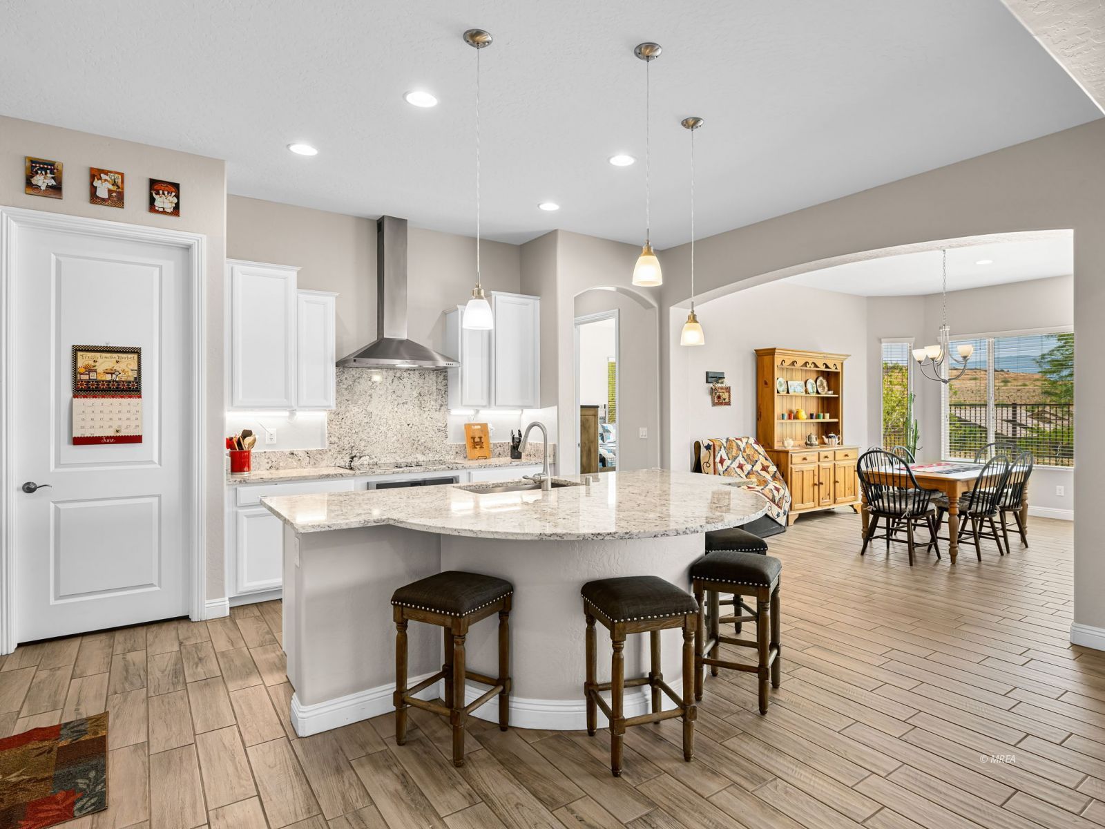 Discover your dream retreat! This exquisite 3-bedroom, 2-bath home blends modern luxury with breathtaking mountain views. Step into a beautifully upgraded kitchen featuring granite countertops, a large basin sink, and two ovens ” perfect for culinary enthusiasts”. The spacious pantry offers ample storage. Throughout the home, enjoy elegant tile flooring, tall 10′ ceilings, and tall doors that enhance the open, airy feel. Relax in the main bedroom with its charming bay window overlooking picturesque mountains and an upgraded walk-in tiled shower in the en-suite bath. The dining room also boasts a bay window with stunning views, creating an ideal setting for meals. A large den with glass doors provides flexible living space. The extra-long garage accommodates a crew cab pickup, plus your ATV or smaller side-by-side. Outside, a covered patio invites you to unwind while taking in the mountain vistas. The fully landscaped, large backyard offers room for a pool, and endless outdoor enjoyment. With abundant natural lighting and a convenient laundry room with a sink, every detail has been considered. Priced to sell, book your showing today!