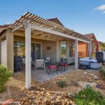 Welcome to this beautifully upgraded single-story home offering 2 bedrooms, 2 bathrooms, & a versatile den. Thoughtfully designed with luxury vinyl plank flooring throughout, this home is entirely carpet-free for a clean, modern feel.The spacious primary suite offers a feature wall & elegant bay windows that fill the room with natural light, along with a tiled walk-in shower & granite countertops for a refined touch. Granite counters continue throughout the home, complementing the stylish finishes in every space. Enjoy excellent curb appeal with a paver driveway & walkway, & continue the outdoor living experience in the fully landscaped & fully fenced backyard. The extended pergola-covered patio offers abundant shade and comfort, complete with a cozy two-person hot tub-your own private retreat.Set against a peaceful green space park, this property provides serene northern and eastern mountain views, creating a stunning backdrop from sunrise onward. The paver back patio enhances the outdoor ambiance and makes this home ideal for relaxation or entertaining. With it’s desirable layout, tasteful upgrades (over $100k) & Scenic setting, this home is the perfect blend of comfort and style