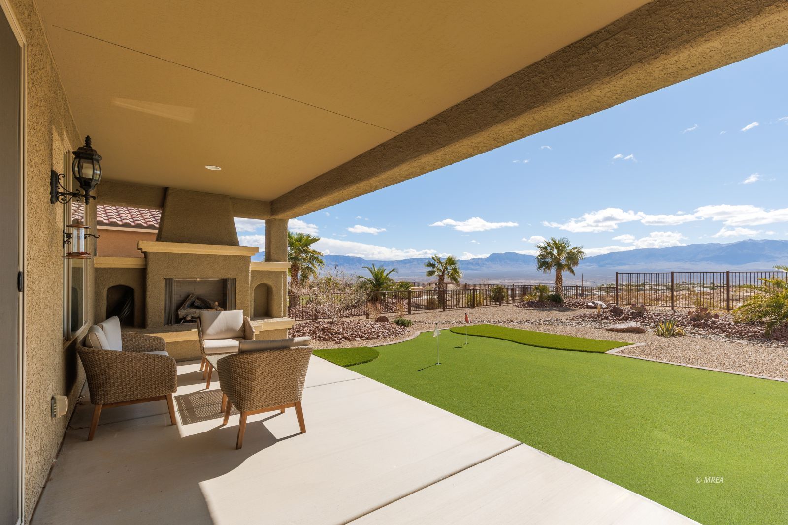 Welcome to your dream retreat in Sun City Mesquite, one of Nevada’s premier 55+ communities. This stunning fully furnished home delivers the perfect blend of comfort, convenience, professional landscaping, and breathtaking scenery that will captivate you from the moment you arrive. Step inside to discover 1,890 square feet of thoughtfully designed living space featuring two spacious bedrooms, two full bathrooms, and a versatile den – ideal for a home office, craft room, or reading sanctuary. The courtyard, off the kitchen, offers a separate outdoor living space. Every room comes move-in ready with nice furnishings. The majestic mountain views that surround this property are nothing short of spectacular. Whether you’re sipping morning coffee on the patio or entertaining guests, the dramatic desert landscape provides a stunning natural backdrop. The outdoor fireplace provides privacy and ambience. The generous lot size and partially fenced outdoor space offer both privacy and room to create your own desert oasis. Sun City Mesquite delivers an unparalleled active adult lifestyle with world-class recreation, welcoming neighbors, and endless sunshine.