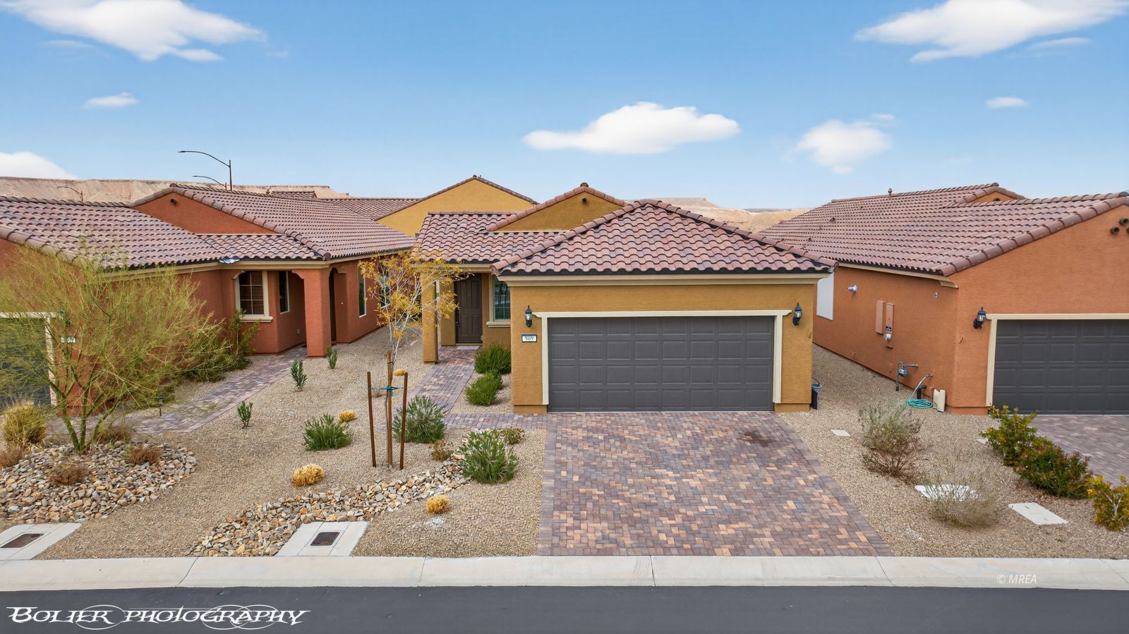 Enjoy modern living in this lovely Pinespring model, built in 2024 in the highly desirable Sun City Mesquite community, where resort-style amenities are right at your fingertips. This thoughtfully designed home features two bedrooms plus a flex room, offering versatility for a home office or hobby space. The open kitchen features granite countertops, stainless steel appliances, and a natural gas oven range with upgraded cabinetry. Both bedrooms include spacious walk-in closets, while the primary suite is highlighted by a beautifully tiled walk-in shower in the ensuite bath. Another upgrade, the 2 car garage has a 2′ extension for those longer vehicles. With modern finishes, smart design, and an unbeatable lifestyle, this home is ready to be enjoyed!